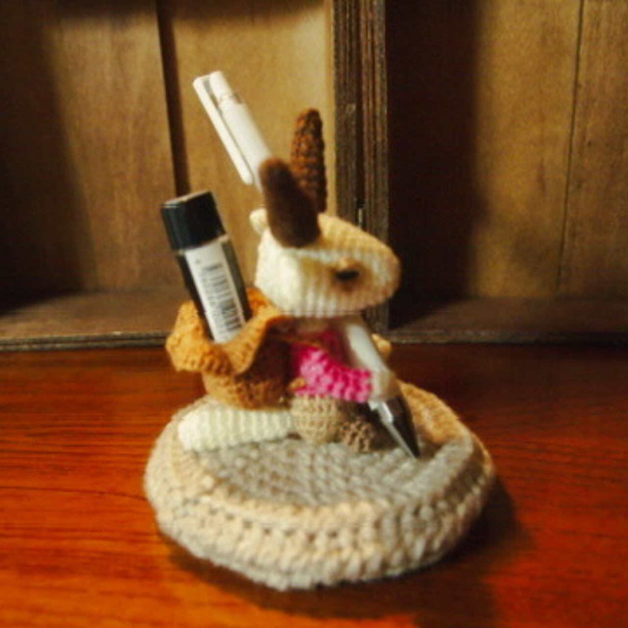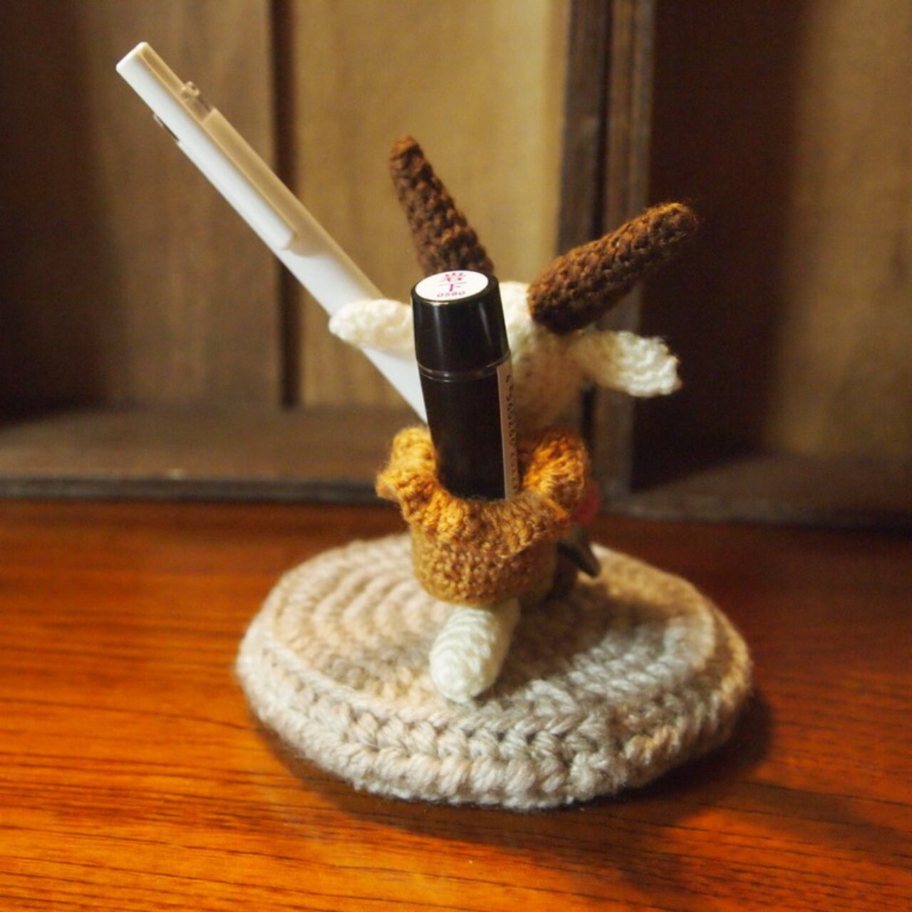 ペンとシャチハタを支える便利でかわいい作品。